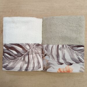 Coppia Asciugamani Spugna Flora Sahara Panna