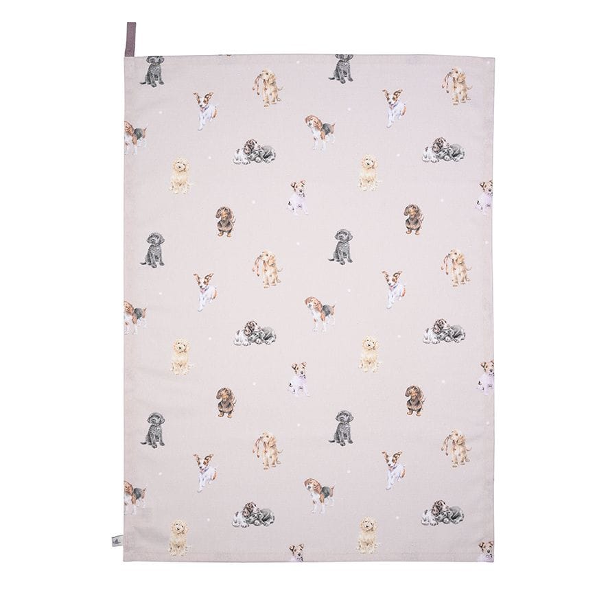 Canovaccio Cucina tessuto 100% Cotone con stampa tutto su sfondo color Fango e con fantasia di tanti piccoli Cani, un pratico passante per appenderlo garantisce stile e praticità. Lavabile in Lavatrice a 30°.