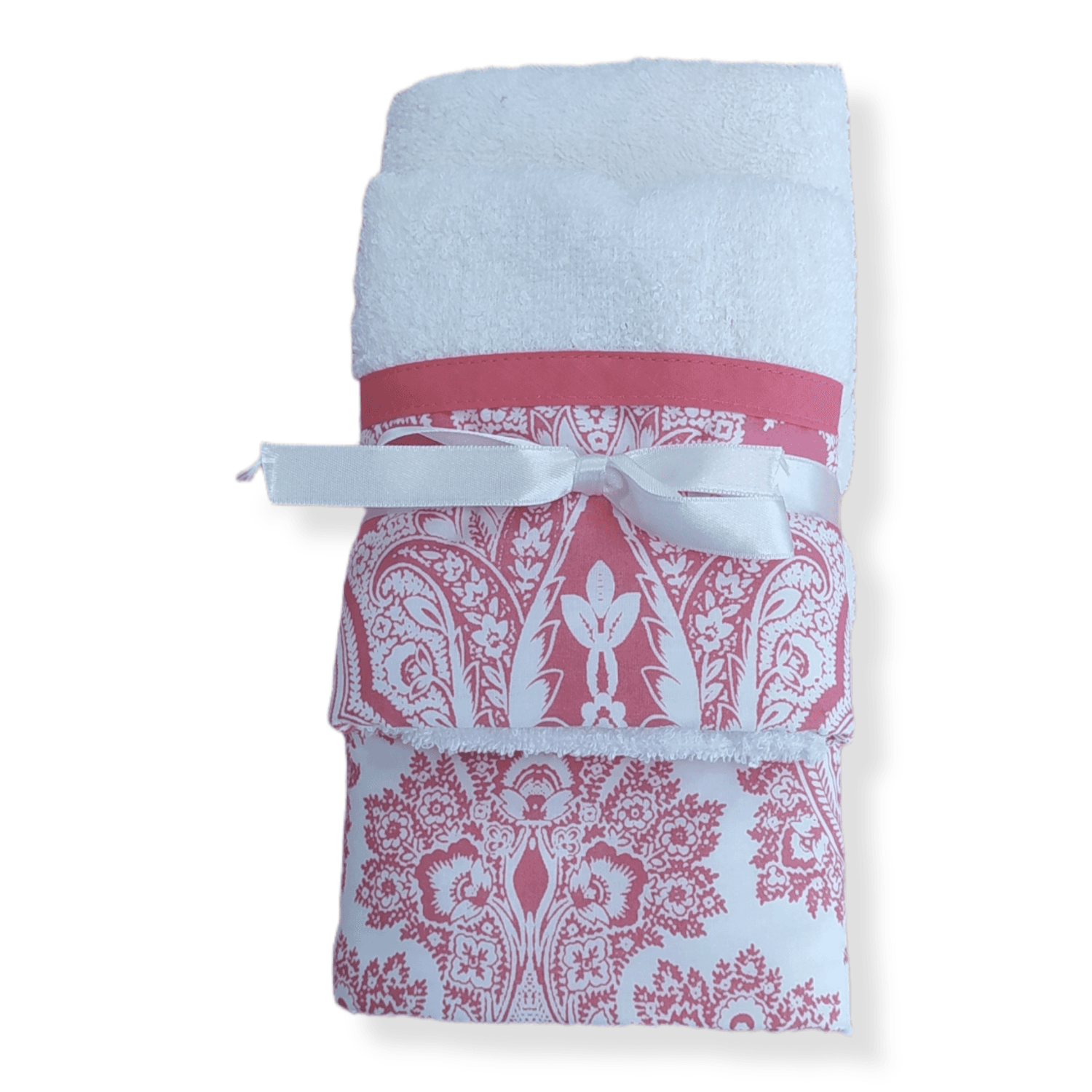 Coppia di Asciugamani da bagno “Flora Sahara”, composta da una salviette per il viso e una salviette per ospite, realizzata in morbida e delicata spugna 100% cotone, di colore Panna, con una raffinata balza a stampa digitale decorata con disegno mandala.
