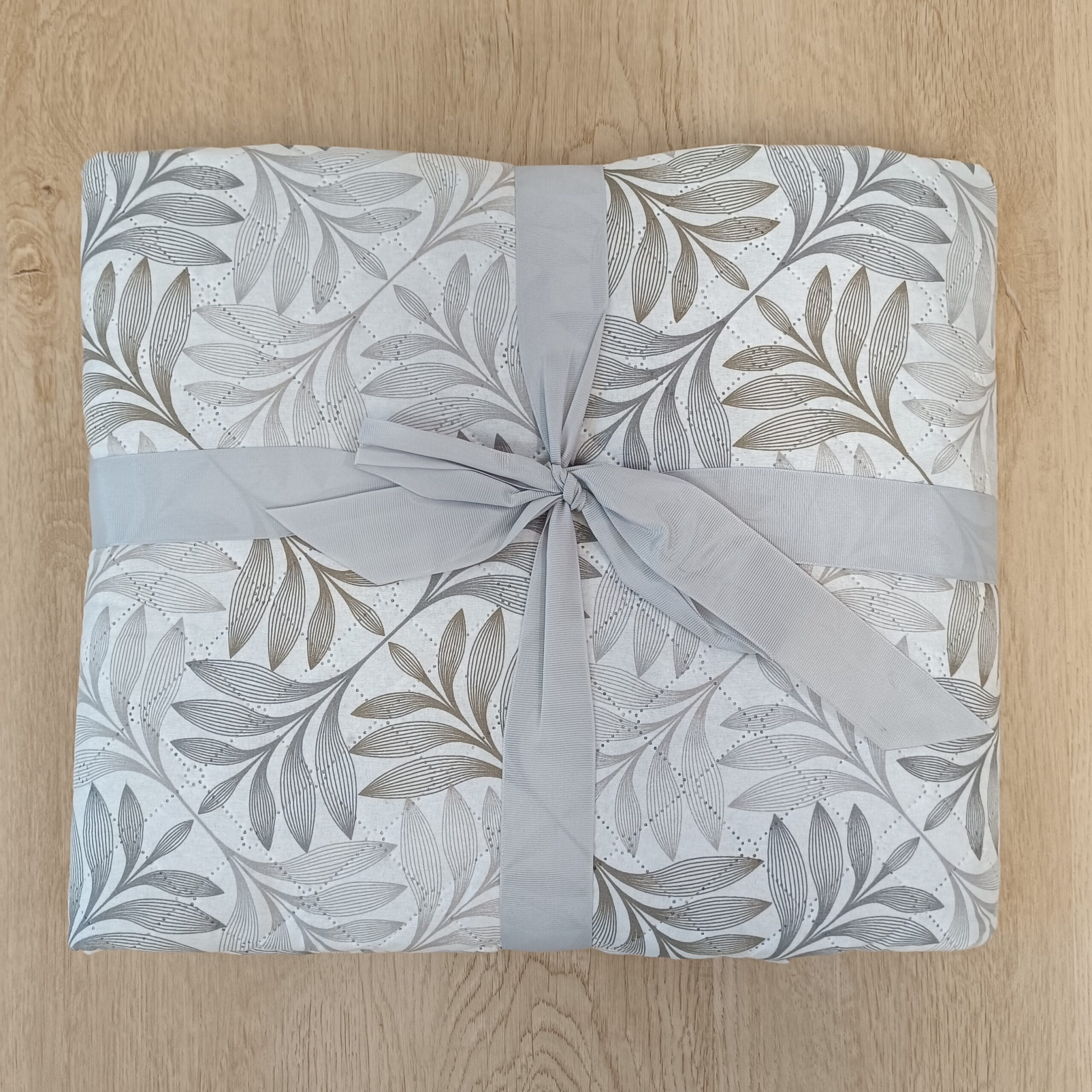 Copriletto trapuntato 1 Piazza e Mezza “Fusion”, leggero e fresco perfetto per la Primavera/Estate con sfondo bianco e una delicata fantasia Foglie Natura, offre morbidezza e comfort per ogni notte.